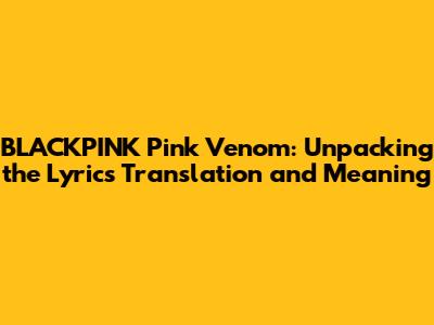 Understanding "Pink Venom" - A Deep Dive into the Lyrics
