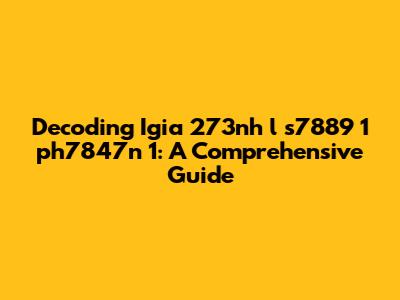 Decoding Igia 273nh L S7889 1 Ph7847n 1: A Comprehensive Guide