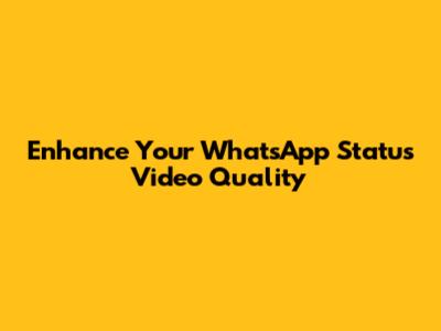 Enhance Your WhatsApp Status Video Quality