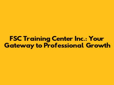 FSC Training Center Inc.: Your Gateway To Professional Growth