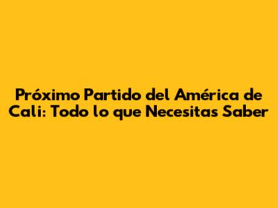 Próximo Partido América De Cali: Fecha Y Detalles