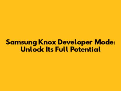 Samsung Knox Developer Mode: Unlock Its Full Potential