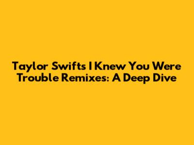 Hey guys! Let's talk about one of Taylor Swift's absolute bangers, "I Knew You Were Trouble." This track from her Red album was a massive hit, right? But what happens when you take an already amazing song and give it a fresh spin through the magic of remixes? Well, buckle up, because we're about to dive deep into the world of "I Knew You Were Trouble" remixes, exploring how different producers and DJs have reimagined this iconic song, and why these versions often hit just as hard, if not harder, on the dance floor. We'll be looking at the evolution of the track, how remixes can elevate a song's status, and why fans keep coming back for more of these electrifying takes. Get ready to rediscover a classic through a whole new lens!