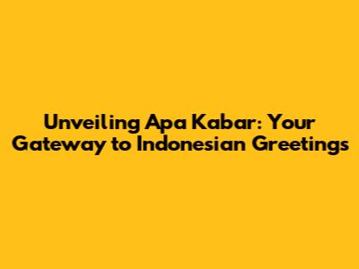Unlocking 'Apa Kabar': Your Guide To Indonesian Greetings