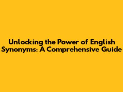 Unlocking The Power Of English Synonyms: A Comprehensive Guide